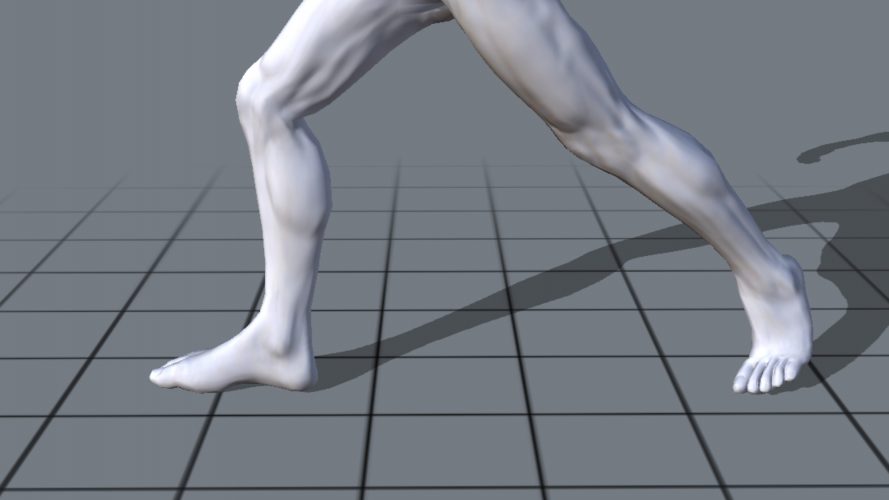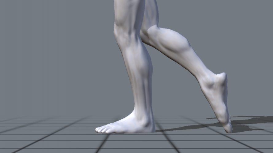 Dem Impuls folgend, rollt der Schwerpunkt von der Ferse bis zur Zehe, wobei die Hüfte das Knie überholt. Sobald das Knie über die Fußspitze hinausragt, wird das freie Bein angesetzt. Die Biomechanik warnt: Eine Belastung der Knie außerhalb des Fußbereiches ist für diese nicht gesund! Die Belastung in der Bewegung  wirkt allerdings nicht senkrecht, sondern schräg von vorne. Dadurch entsteht der Eindruck, dass das Knie weit über den Fußbereich hinaus gelangt. Man stelle sich einen Sprungstab vor, der entlang seiner Achse gestaucht wird und gleichzeitig umkippt.