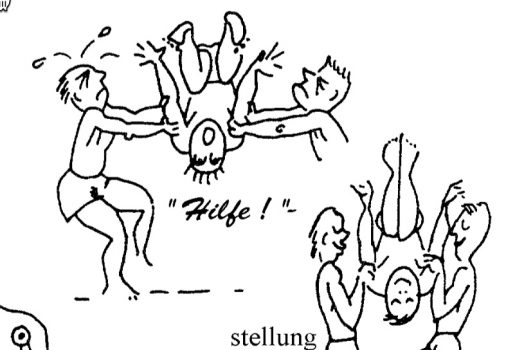 In principle, the safety-helper (spotter) should know the trick itself, so that he recognizes the potential dangers in good time. Arrangements: First, the helper is informed, which trick to secure and what is expected of them. In principle, the helper is never directly in front of or behind the base so that no-one does stumble during a correction step. As soon as more than one correction step is necessary, the base breaks off, otherwise it forces the helper(s) to run along. A helper can not catch well, while he moves! An unintentionally rotating base also forces the helper to move. […]