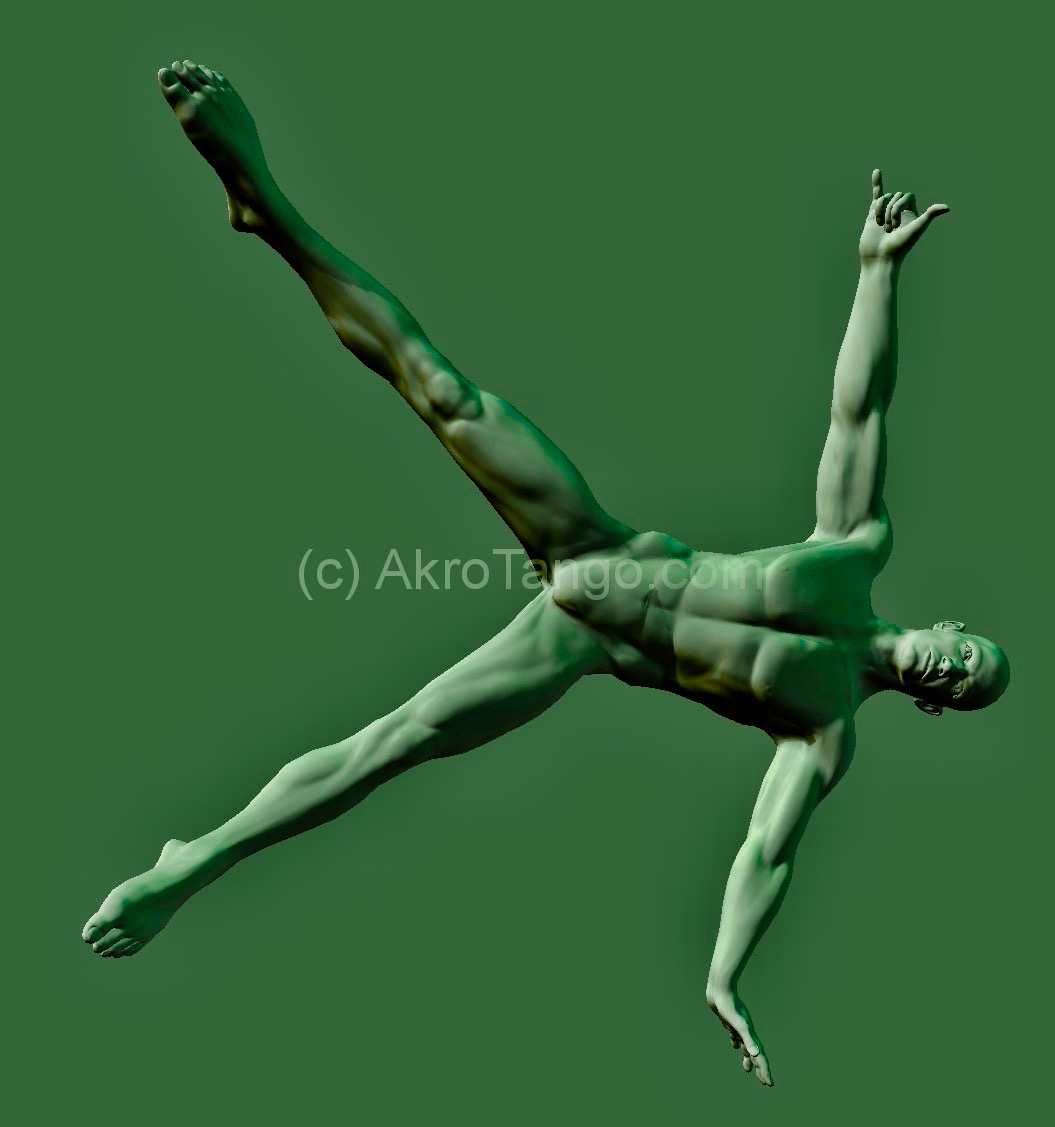 This position is usually supported with the hand, thus it usually has 2 contact points. It is a popular, because audience-effective position, which can be learned with little effort. Analogous to the previous names, I call them side-flyer. However, she is also known by other names, such as swallow, high star, … just to name a few.