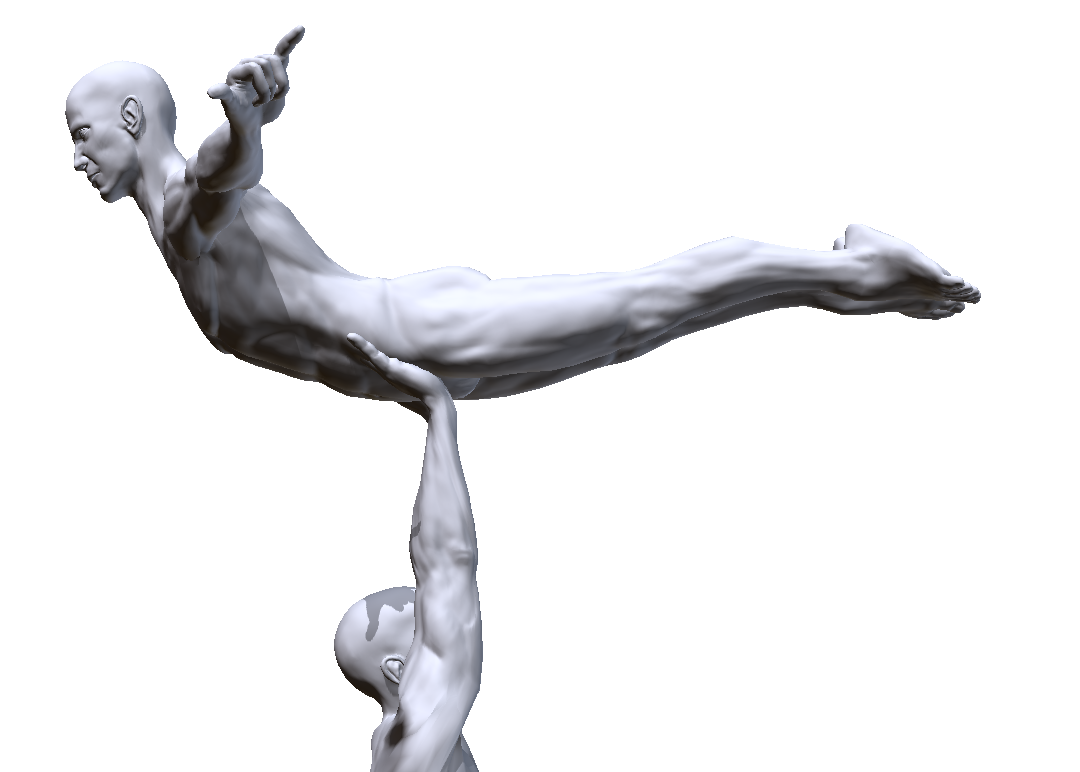 Der Hohe Flieger ist eine der ersten Figuren des stehenden Base zum langen Arm. Sobald ein Anfänger als Base diesen Trick hin bekommt, darf er sich in den Status eines Fortgeschrittenen erheben 😉 Obwohl dieser Trick auch ohne gute Technik machbar sein sollte, habe ich schon Body-Builder mit einem 60 kg-Flyer daran scheitern sehen, obwohl sie liegend durchaus 120 kg und im Stehen immerhin noch 80 kg hoch drücken konnten. Was also ist an diesem Trick so besonders?